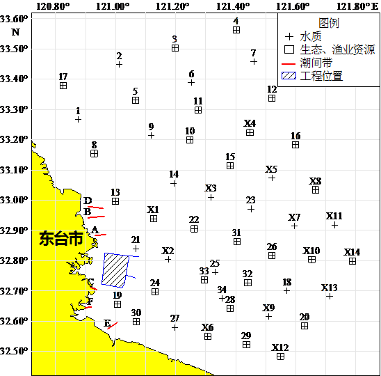 監(jiān)測點位:按新導(dǎo)則要求布設(shè),29個站位和6條斷面潮間帶生物。