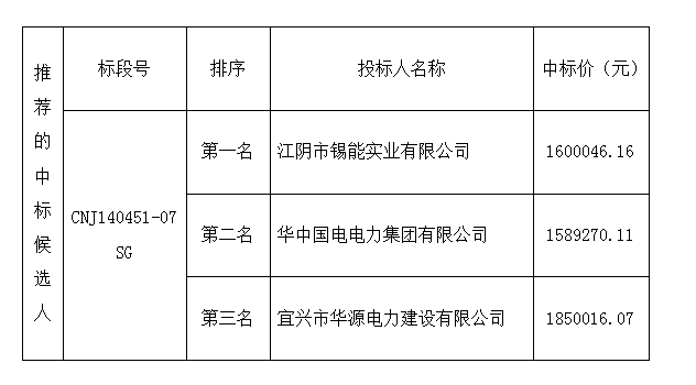 條子泥墾區(qū)(一期)條南片一至四區(qū)西片配套工程項目供電線路工程施工CNJ140451-07SG標(biāo)段評標(biāo)工作已經(jīng)結(jié)束,現(xiàn)將中標(biāo)候選人公示如下: