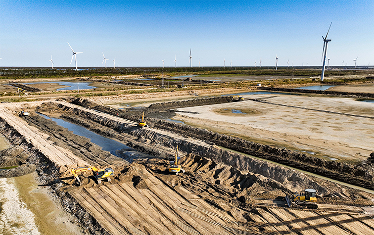 “蘇湖熟,天下足?!苯?jīng)濟(jì)大省江蘇是全國聞名的“魚米之鄉(xiāng)”,近年來,隨著經(jīng)濟(jì)發(fā)展和城鎮(zhèn)建設(shè),土地開發(fā)強(qiáng)度隨之增加,江蘇人多地少的矛盾日漸突出。江蘇土地總面積占全國的1.12%,人口總數(shù)占全國的5.75%,人均占有耕地僅0.86畝,逼近聯(lián)合國糧農(nóng)組織確定的人均耕地0.8畝警戒線。作為省級沿海開發(fā)主力軍,江蘇省沿海開發(fā)集團(tuán)勇挑為全省提供后備土地資源的大梁,在鹽城東臺,集團(tuán)倉東土地整治項(xiàng)目(一期)建設(shè)現(xiàn)場一派緊張有序的建設(shè)景象,從一張規(guī)劃圖紙到機(jī)器轟隆,這里正實(shí)現(xiàn)從鹽堿地向高標(biāo)準(zhǔn)農(nóng)田邁進(jìn)的蛻變。