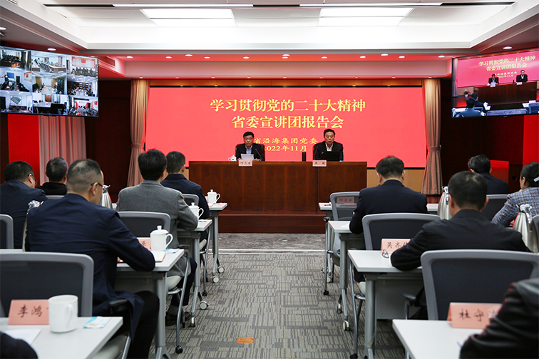 根據(jù)省委統(tǒng)一部署安排,11月18日下午,省沿海集團黨委召開學(xué)習(xí)貫徹黨的二十大精神省委宣講團報告會。省委宣講團成員、南京師范大學(xué)馬克思主義學(xué)院教授委員會主任王躍教授作宣講報告,集團黨委書記、董事長鄧東升主持報告會。