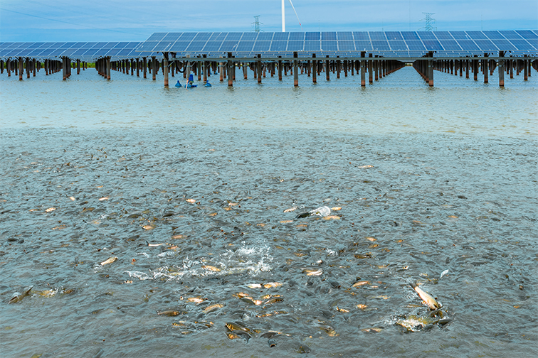 在連云港灌云縣,利用3500畝養(yǎng)殖水面建成灌云洋橋200MW漁光一體示范項目(一期),有效結(jié)合現(xiàn)代漁業(yè)與智能光伏產(chǎn)業(yè),形成上可發(fā)電、下可養(yǎng)殖的雙效益模式,實現(xiàn)更高層次綠色低碳發(fā)展。光伏項目安全運行570余天,累計上網(wǎng)電量超42380萬kwh,參與綠色、綠證交易,實現(xiàn)碳減排42.25噸;光伏下低密度草魚養(yǎng)殖,套養(yǎng)花白鰱對蝦,對蝦養(yǎng)殖畝產(chǎn)量50斤,陸基循環(huán)水設(shè)施養(yǎng)殖今年4月開展南美白對蝦苗淡化標粗4070萬余尾,養(yǎng)殖鱸魚1萬余尾,年可實現(xiàn)兩茬苗種標粗和一茬成魚養(yǎng)殖。