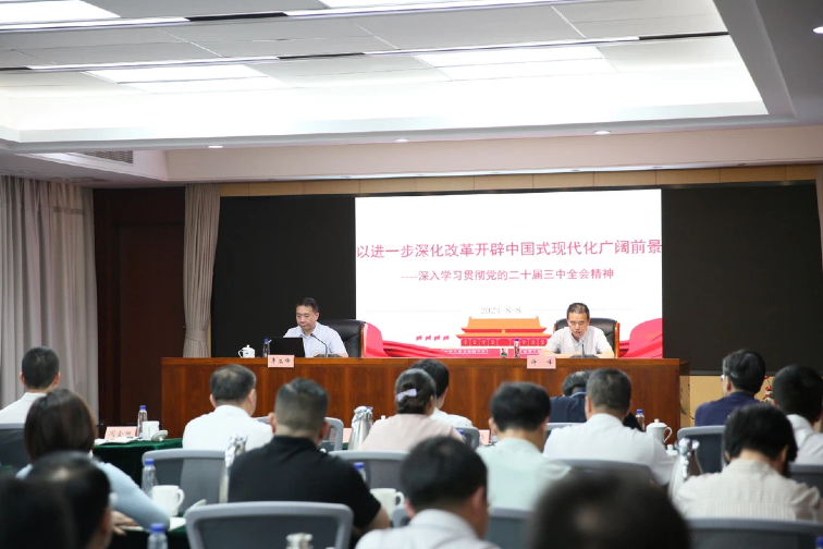 8月8日下午,省委宣講團(tuán)成員、省委黨校教育長、教授李立峰同志為省沿海集團(tuán)全體干部員工宣講黨的二十屆三中全會(huì)精神。