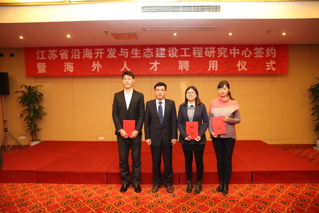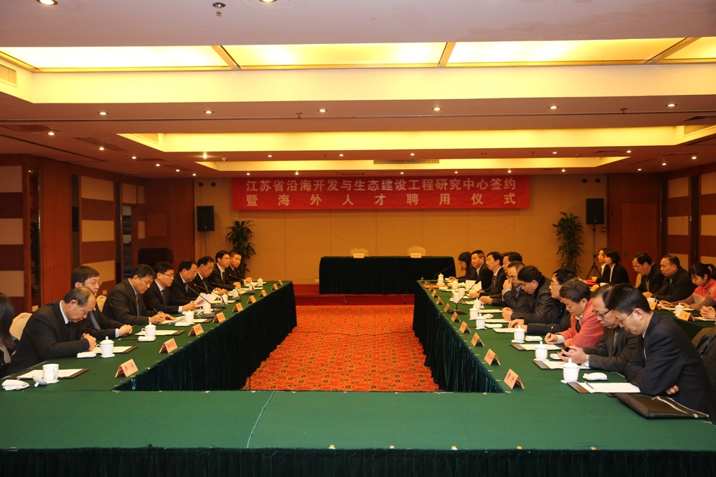 12月17日上午,集團(tuán)公司與河海大學(xué)聯(lián)合舉行了江蘇省沿海開(kāi)發(fā)與生態(tài)建設(shè)工程研究中心簽約暨海外人才聘用儀式。省委組織部干部四處處長(zhǎng)董德,河海大學(xué)校長(zhǎng)徐輝、副校長(zhǎng)唐洪武、海外專家代表李凌,集團(tuán)董事長(zhǎng)鄧東升、總經(jīng)理丁建奇、副總經(jīng)理唐正東,黨委委員、東臺(tái)公司總經(jīng)理周金陽(yáng)以及省國(guó)資委監(jiān)事席寧等出席儀式。儀式由丁建奇總經(jīng)理主持。