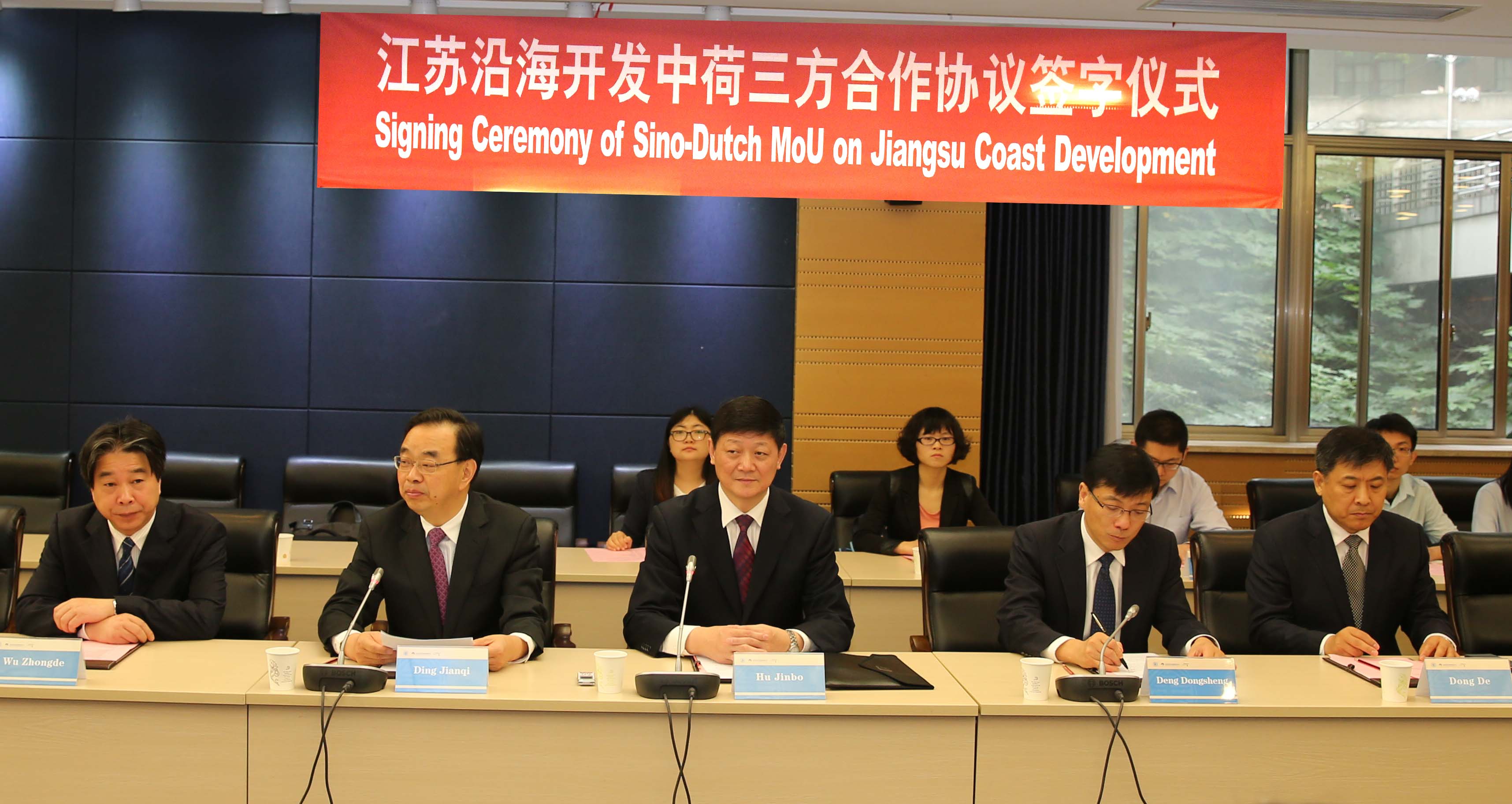 6月5日,江蘇省沿海開(kāi)發(fā)集團(tuán)、河海大學(xué)、荷蘭三角洲研究院在寧舉行江蘇沿海開(kāi)發(fā)中荷三方合作協(xié)議簽字儀式及國(guó)際學(xué)術(shù)研討會(huì)。省委組織部副部長(zhǎng)、省人才辦主任胡金波,荷蘭駐華大使館基礎(chǔ)設(shè)施和環(huán)境參贊 Anne te Velde(魏安娜)女士,集團(tuán)公司董事長(zhǎng)鄧東升,河海大學(xué)黨委書記朱拓教授,荷蘭三角洲研究院亞太區(qū)總監(jiān)Tjitte Nauta(切特 納塔)教授,省委組織部干部四處處長(zhǎng)董德,省外事辦公室國(guó)際交流中心主任吳忠德等領(lǐng)導(dǎo)專家出席儀式。集團(tuán)公司總經(jīng)理丁建奇主持儀式。