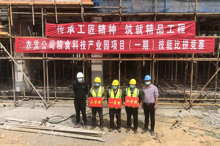 4月24日,在農(nóng)發(fā)公司糧食科技產(chǎn)業(yè)園項目(一期)現(xiàn)場,建管中心黨支部聯(lián)合施工及參建單位舉辦了以“傳承工匠精神 筑就精品工程”為主題的崗位練兵比賽,來自參建單位的近30名技術(shù)精英在封閉化管理的項目施工現(xiàn)場過招,用超強實力,展示工程質(zhì)量。